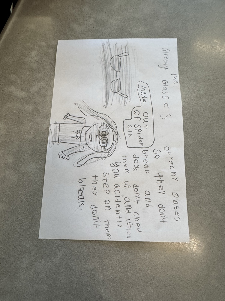Last week, Fourth Grade discussed the amazing attributes of spider silk. They imagined that a scientist discovered a way to replicate the silk in a laboratory. The scientist asked our students to create new inventions that could best use this material. Here's a look at their ideas: